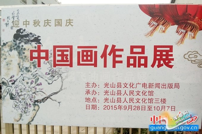 在中秋、国庆来临之际,为了丰富居民精神文化生活,营造祥和喜庆的节日氛围,推动书画艺术事业的发展。由县文化广电新闻出版局主办,县人民文化馆承办,庆中秋迎国庆中国画作品展,于2015年9月28日至10月7日在文化馆三楼展出。mov光山县人民政府门户网站