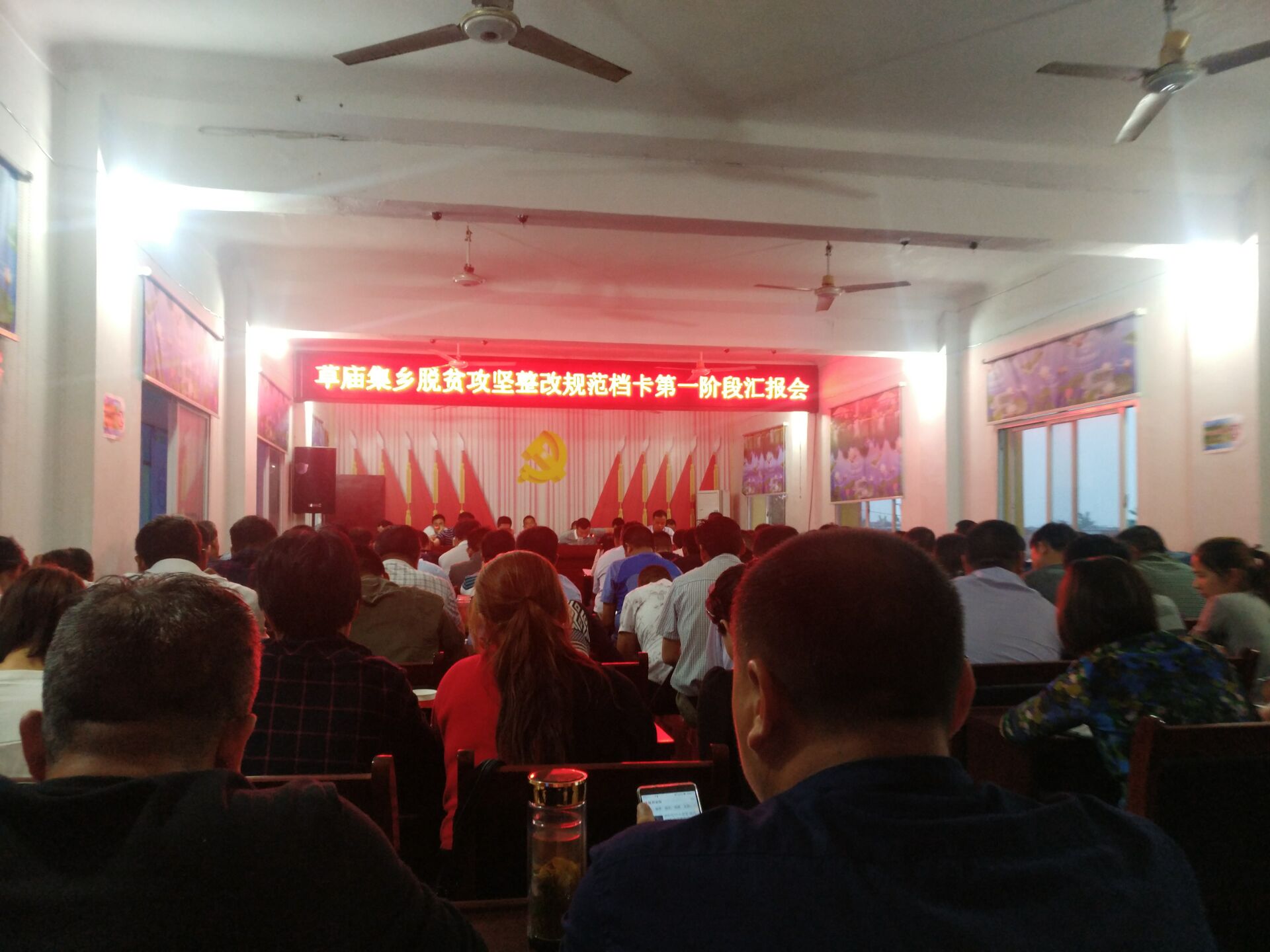 5月15日晚,草庙集乡召开脱贫攻坚整改规范档卡汇报会。全体乡村干部、单位负责人、驻村工作队参加会议。