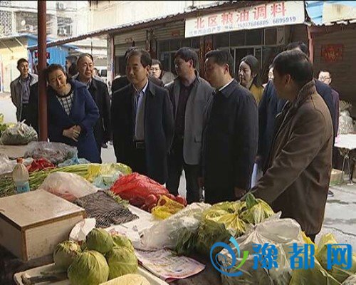 3月6号下午,副市长张明春带领市有关部门负责同志深入平桥北区市场,督导国家卫生城市建设工作。区长柳自强、副区长李平陪同督导。