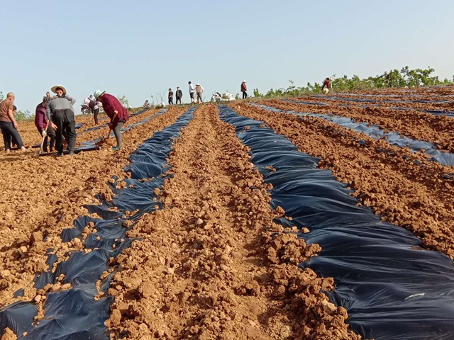 2017年底,鄢岗镇引进河南振大生物科技有限公司在我镇李楼、徐寨、砂岗、祁楼4村建设5000亩构树种植基地,公司采用“公司+基地+合作社+农户”联合经营模式,实现统一提供种苗、统一垦地栽植、统一回收加工。前期已经完成土地流转和整理,近日天气转晴,气温回升,已经开始覆膜栽植,预计本周可以完成种植300亩。
