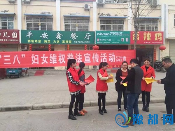 《龙飞山办事处积极开展“三八”妇女节维权普法宣传活动》由河南新闻网-豫都网提供,转载请注明出处:http://xinyang.yuduxx.com/yangshan/351262.html,谢谢合作!